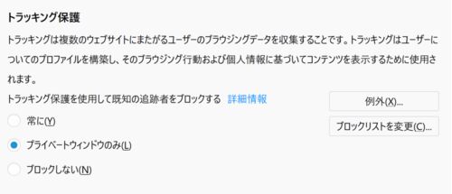 トラッキング防止の新設定 Firefox 42以降、プライベートブラウジングモードではトラッキング防止機能が有効化されるようになっているが、Firefox Quantumでは通常モードでもこの機能を有効化する設定が追加された(Bug 1393627)。トラッキング防止機能を有…