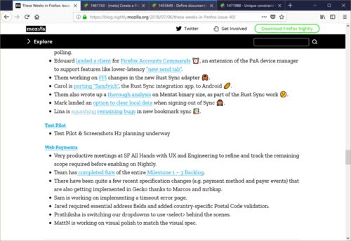 Windows版・Linux版Firefox 61では、Tab Warmingと呼ばれる機能が有効化されている(Bug 1456602)*1。タブを切り替える前にいわばウォームアップを済ませておく機能で、ユーザーに見えないところで処理を先取りするため、結果的にタブの切り替え処理が速く…